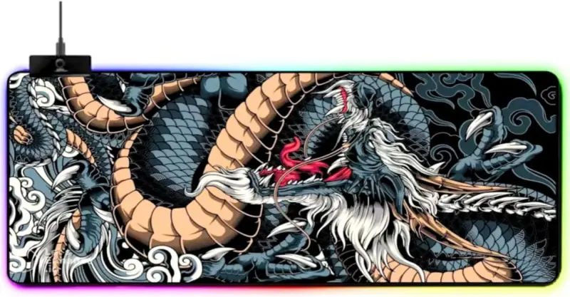 Mouse Pad Gamer com Iluminação LED RGB Extra Grande 80X30cm Base Antiderrapante Emborrachada – Estampa Anime Dragon Blue LED RGB